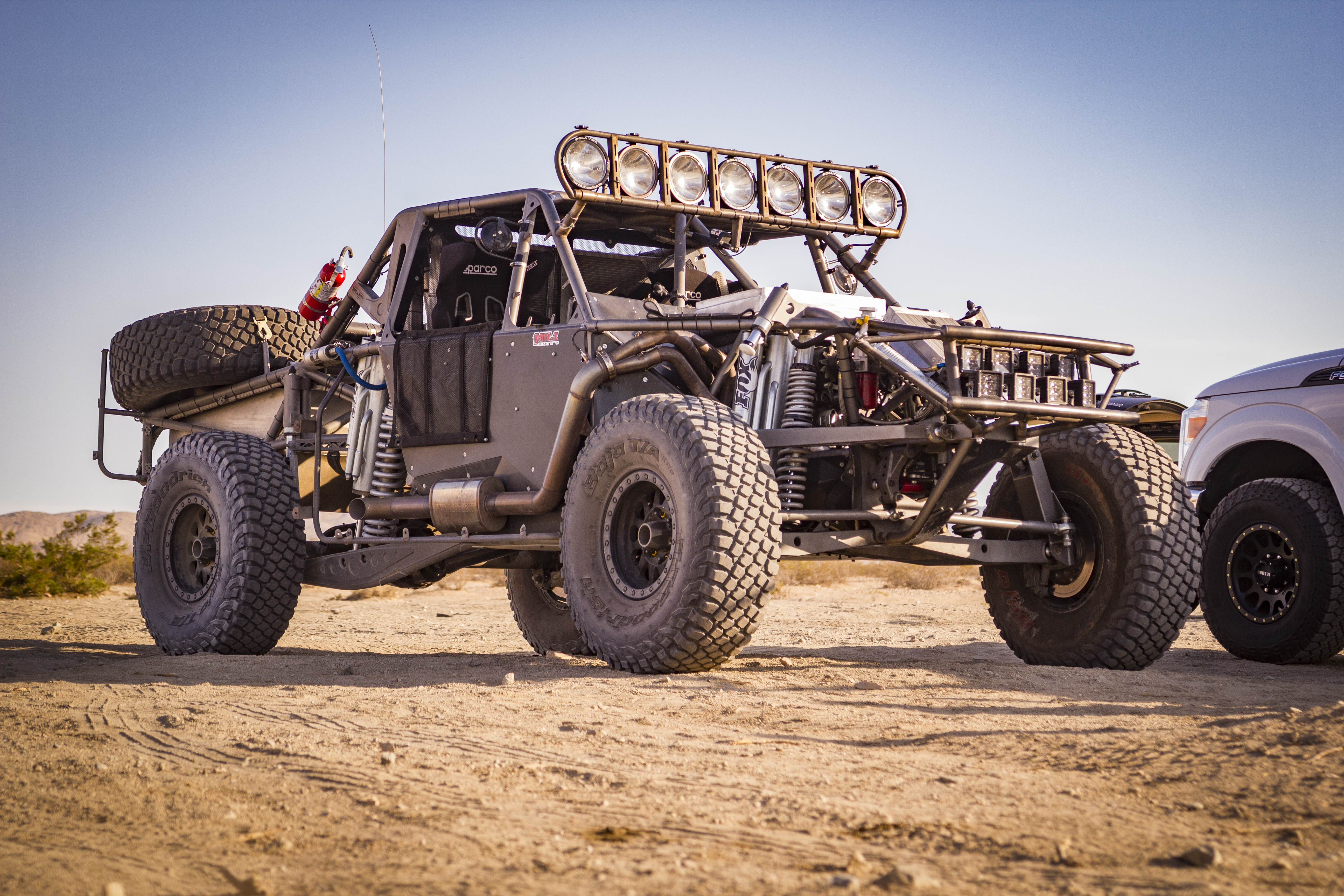 Miller Race Works Trophy Trucks were designed and built to push the limit with ease. The design and components used allow the driver to drive harder with less effort and less where and tear on the truck. Also has better rear geometry which allows for more traction which means less wheel spin , better control and better fuel economy. Can run either a small block or big block engine with ease, uses turbo 400 trans. Travel front 24″ rear 32″, Track 93″ on 40″ BFG, wheel base 125.5″, Steering utilizes steering box with ram assist.